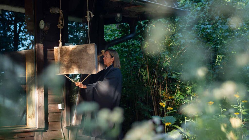 - Tagsüber: Zazen- und Gehmeditation, Dharma-Vortrag, Arbeitspraxisperiode